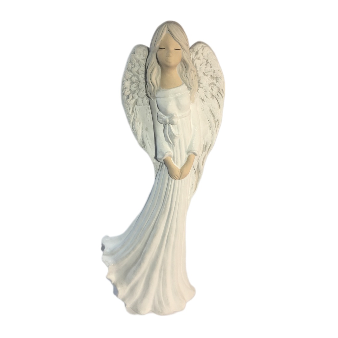 Bílé šaty a stříbrná křídla.