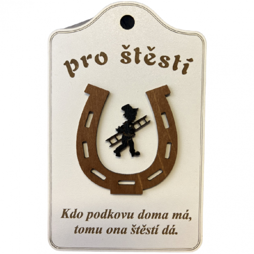 - Dřevěná dekorace - cedulka Pro štěstí - Podkova s kominíkem