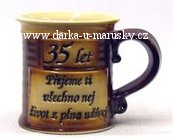 Velmi kvalitní keramický hrnek s nápisem Přejeme ti všechno nej život z plna užívej 35 let je ideální dárek k narozeninám.