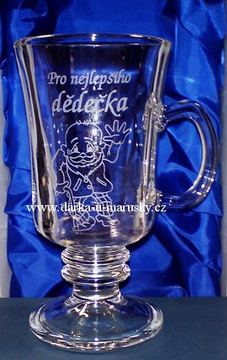 Pískovaná sklenička - Venézie dekor PRO NEJLEPŠÍHO DĚDEČKA na stopce s uchem
