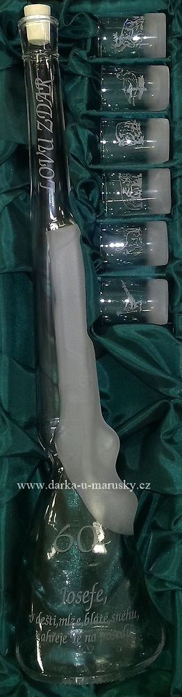 Pískovaná sada 6+1 / Puška + 6 čtvrtek - originální dárek pro milovníky myslivosti