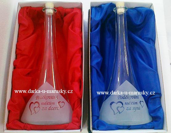 - Pískovaná láhev - Poděkování rodičům za dceru