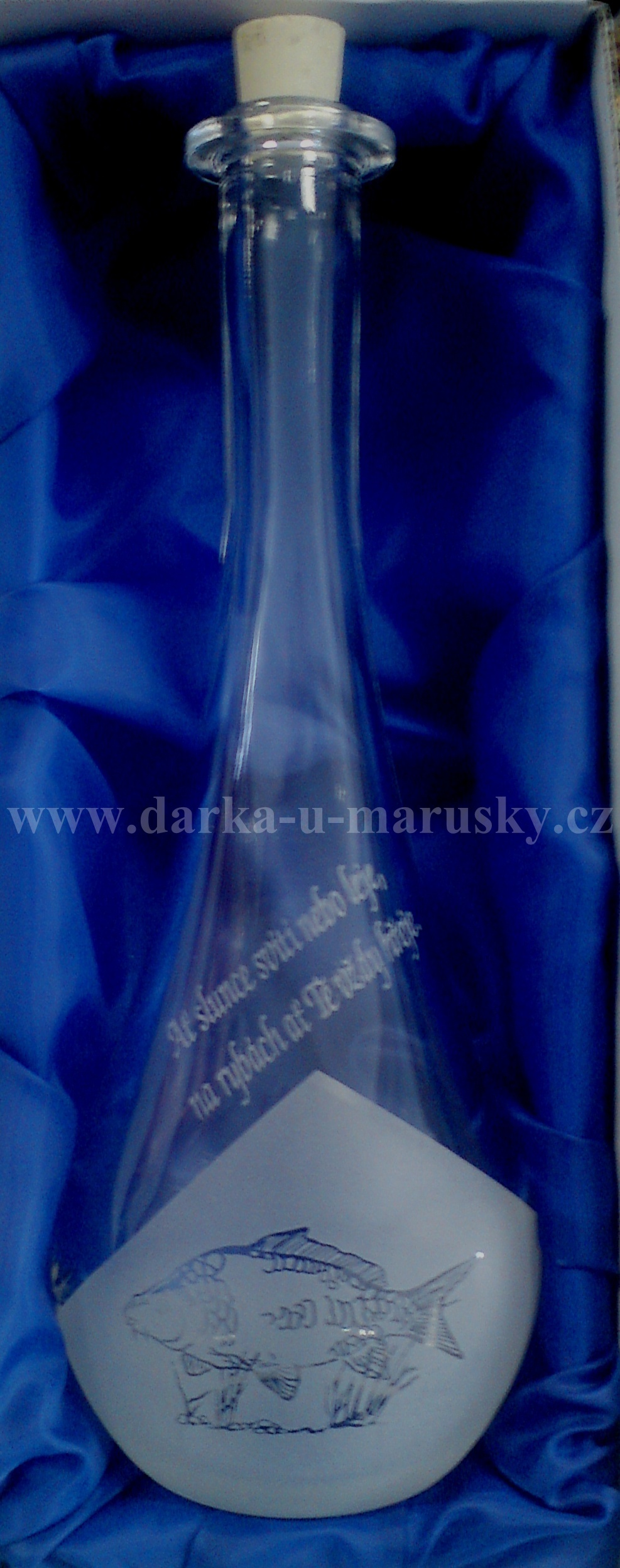 - Pískovaná láhev na slivovici / dekor- Kapr č.5