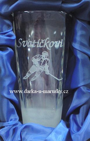 - Pískovaná sklenička - Hokej č. 5 - ( Tvar skleniček se může lišit)