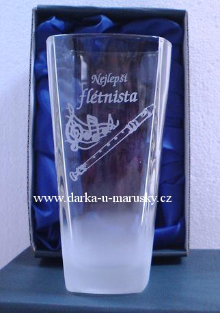 Pískovaná sklenička dekor FLÉTNA - Nejlepší flétnista ( Tvar skleniček se může lišit)