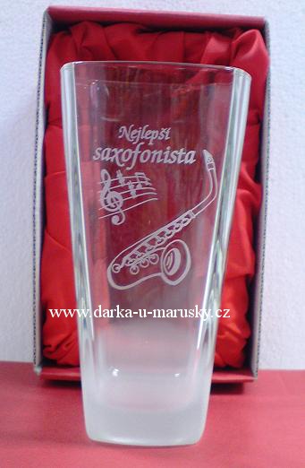 Pískovaná sklenička dekor SAXOFON - Nejlepší saxofonista -