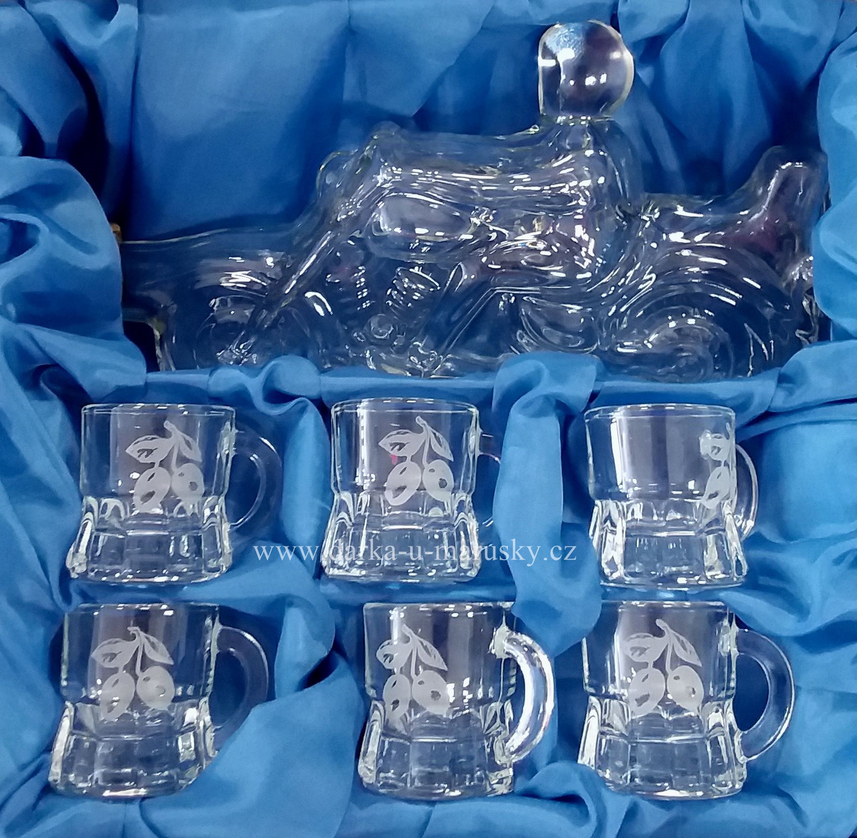 Pískovaná souprava / láhev motorkář + čtvrtky s ouškem 6+1