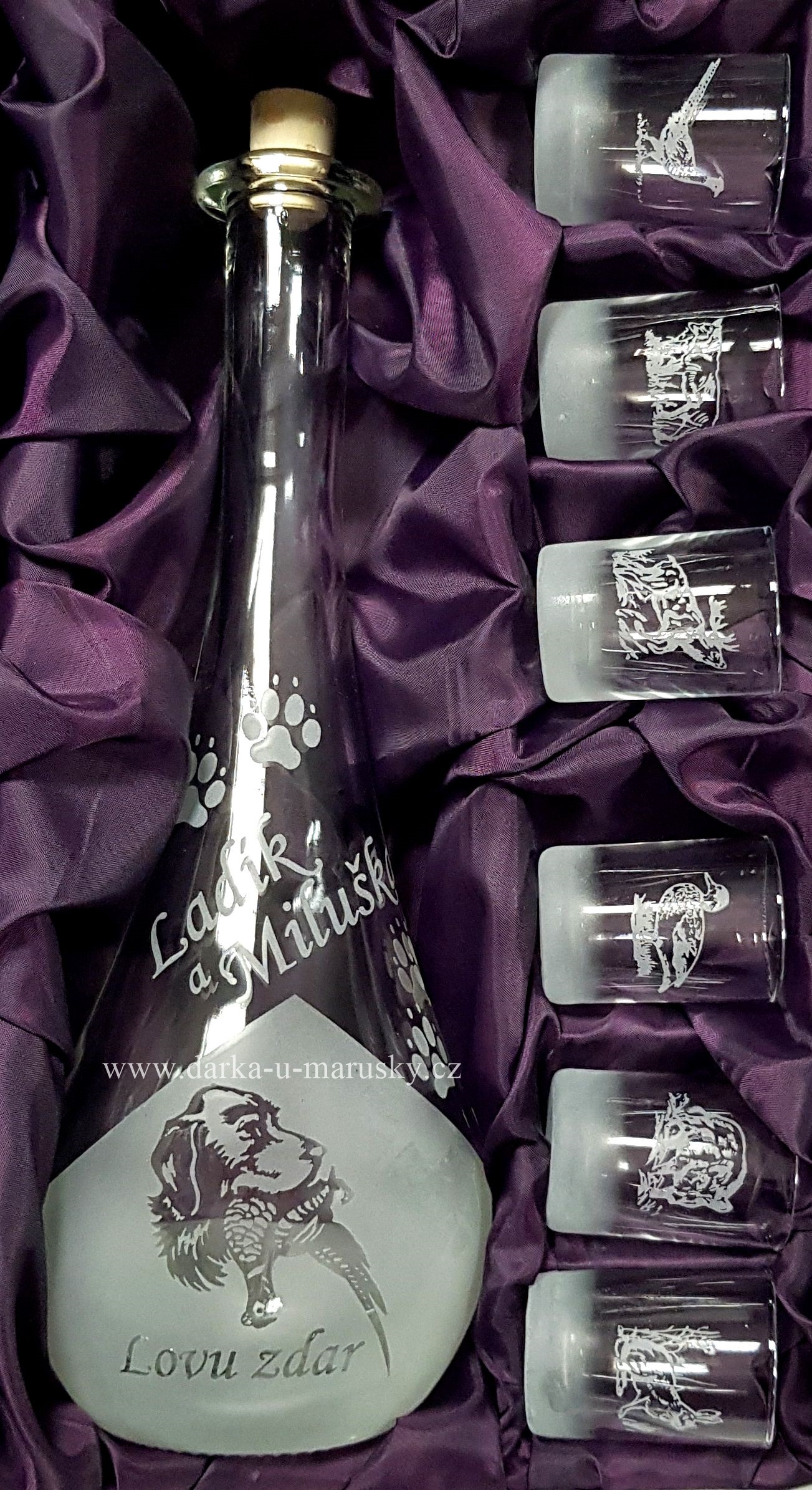 - Pískovaná souprava góčio/vodky 6 + 1 - Pes - Lovu zdar