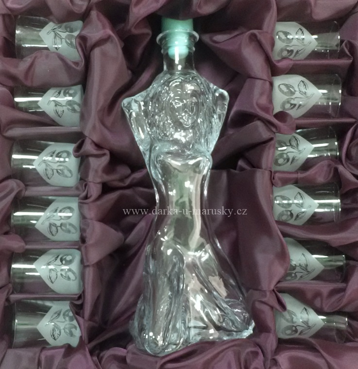 - Cena je za celou sadu (1x láhev ve tvaru ženy + 12 čtvrtek a dárková krabička).