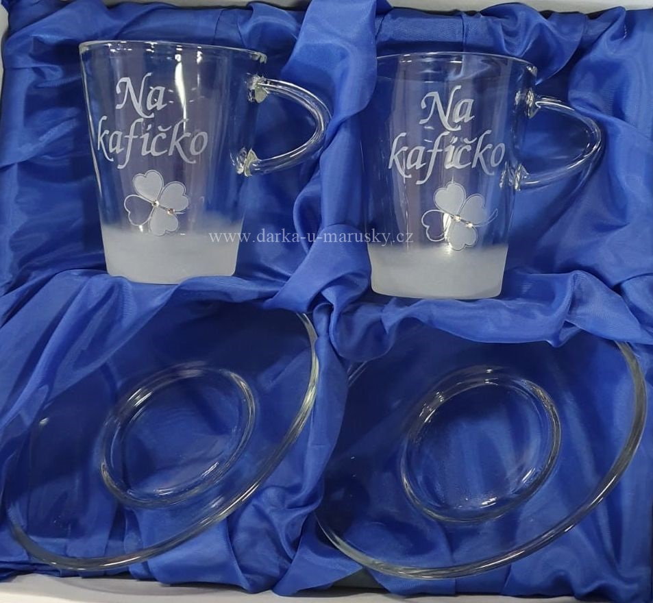 - Pískované šapo 4ks Na kafíčko - Čtyřlístek (2šálky + 2 podšálky)