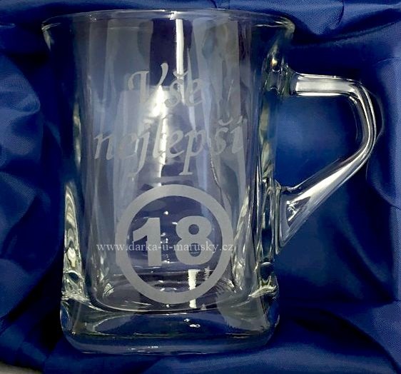 Pískovaný hrníček - Geo nízký - Vše nejlepší ,,18"