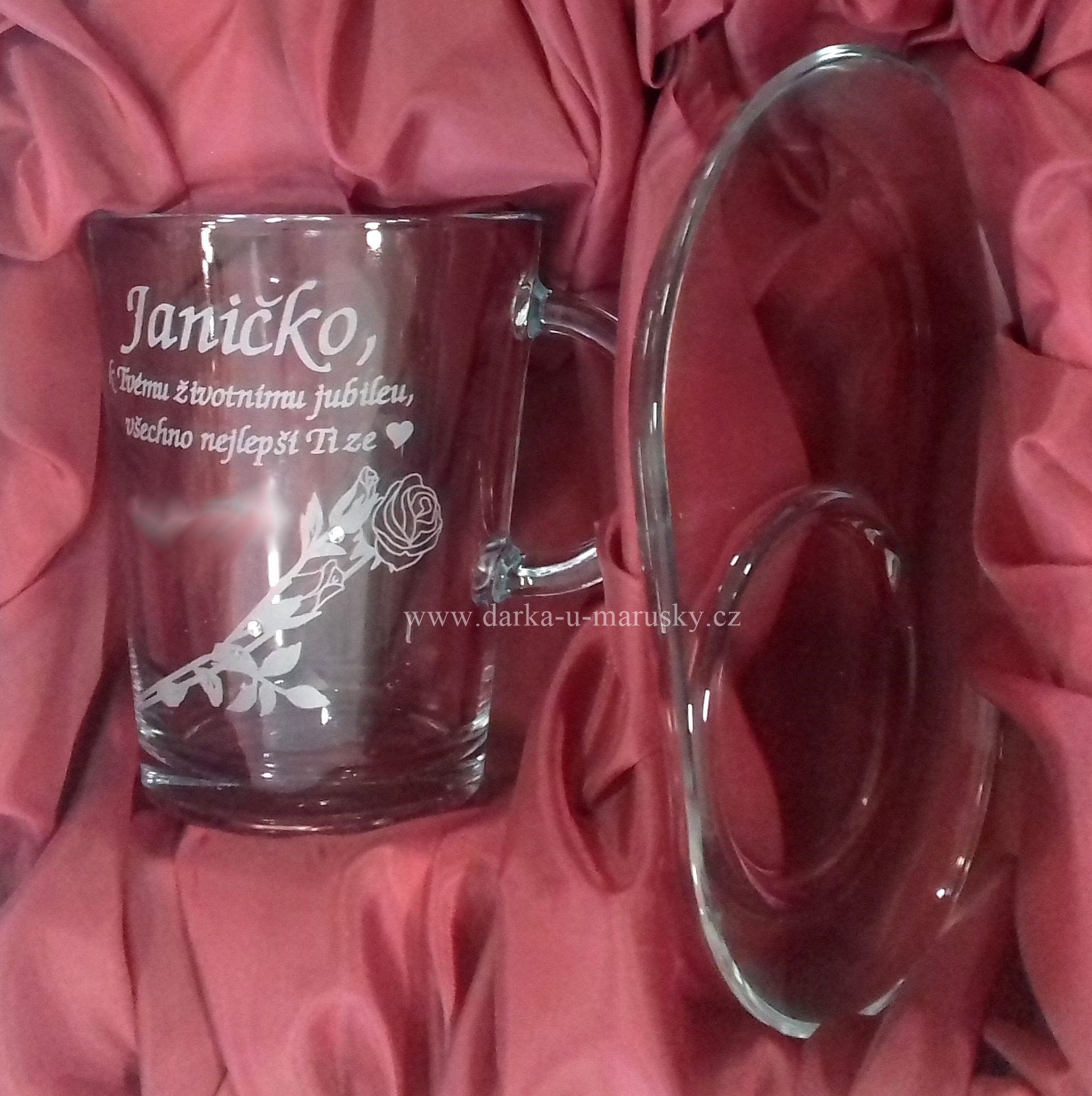 - Pískovaný hrníček s podšálkem LEO - dekor růže