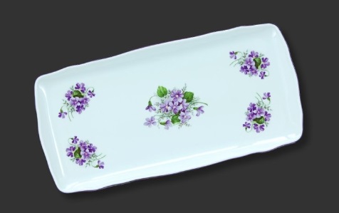 Kvalitní porcelánový podnos - štrúdlák - dekor fialky