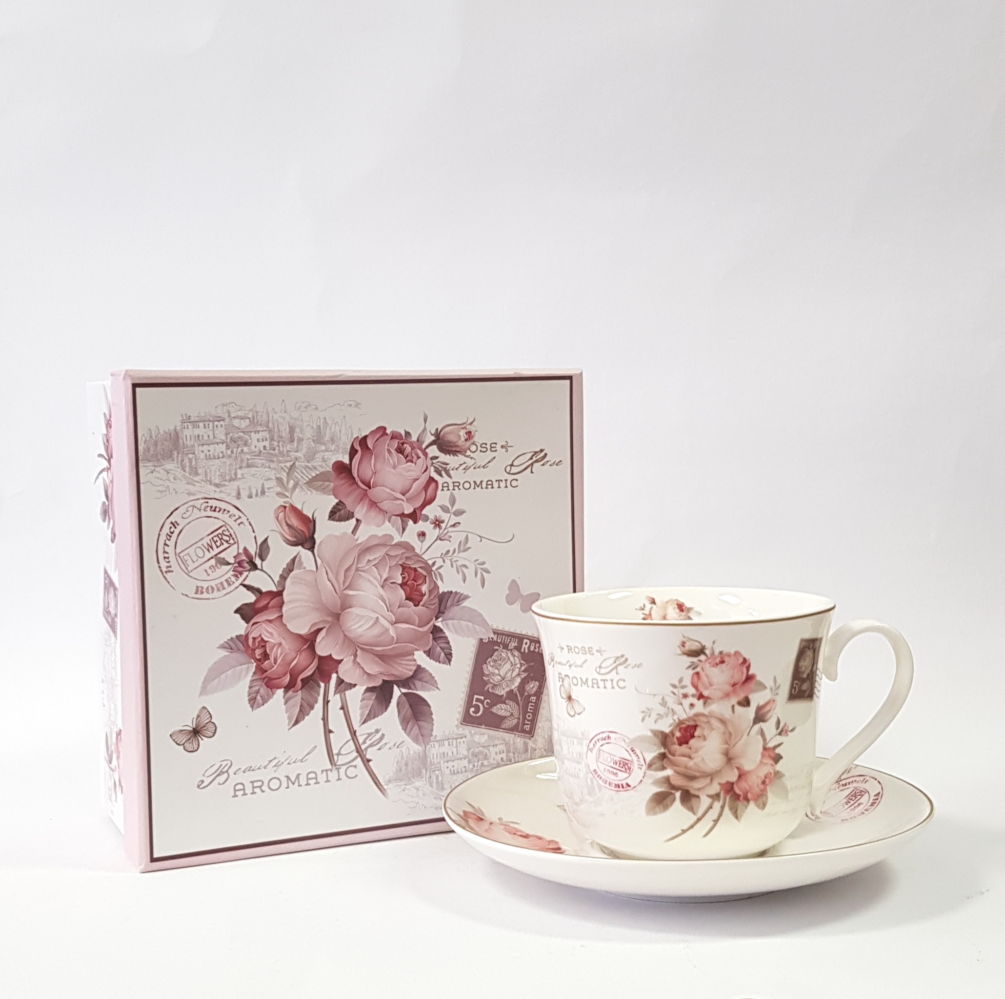 Šálek s podšálkem "Beautiful roses aromatic" v dárkovém boxu