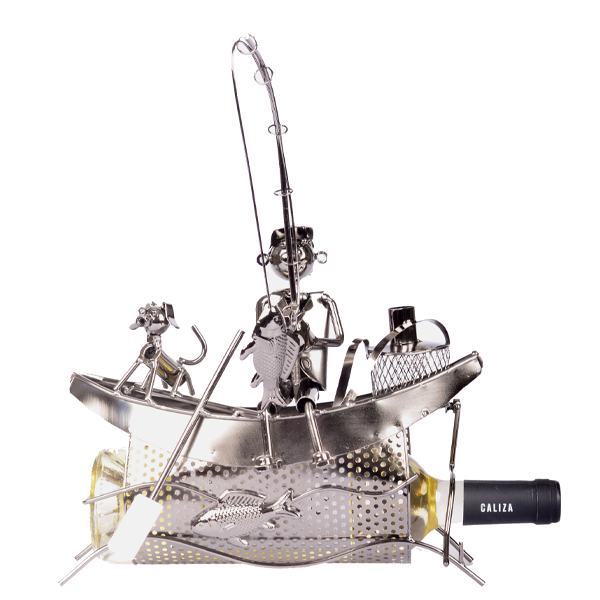 - Stojan na láhev - víno - Rybář sedící na člunu
