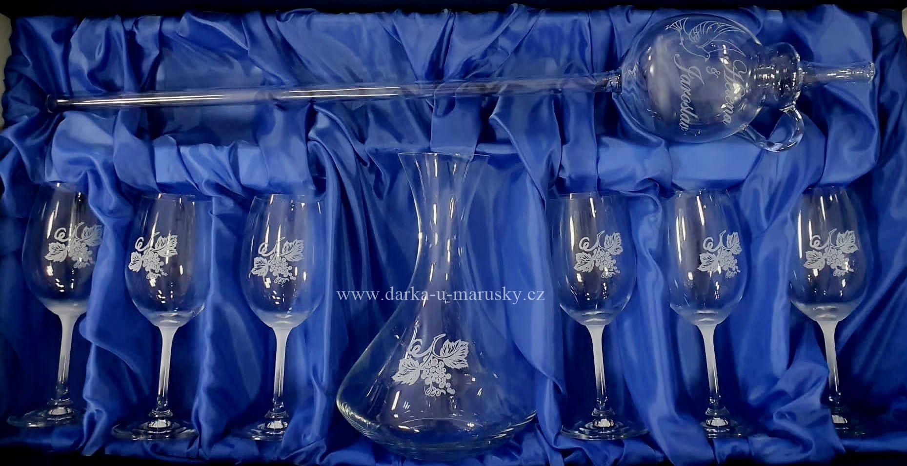 Svatební someliérská souprava na víno/Vine - 6+2 dekor č.3 + hrdlička
