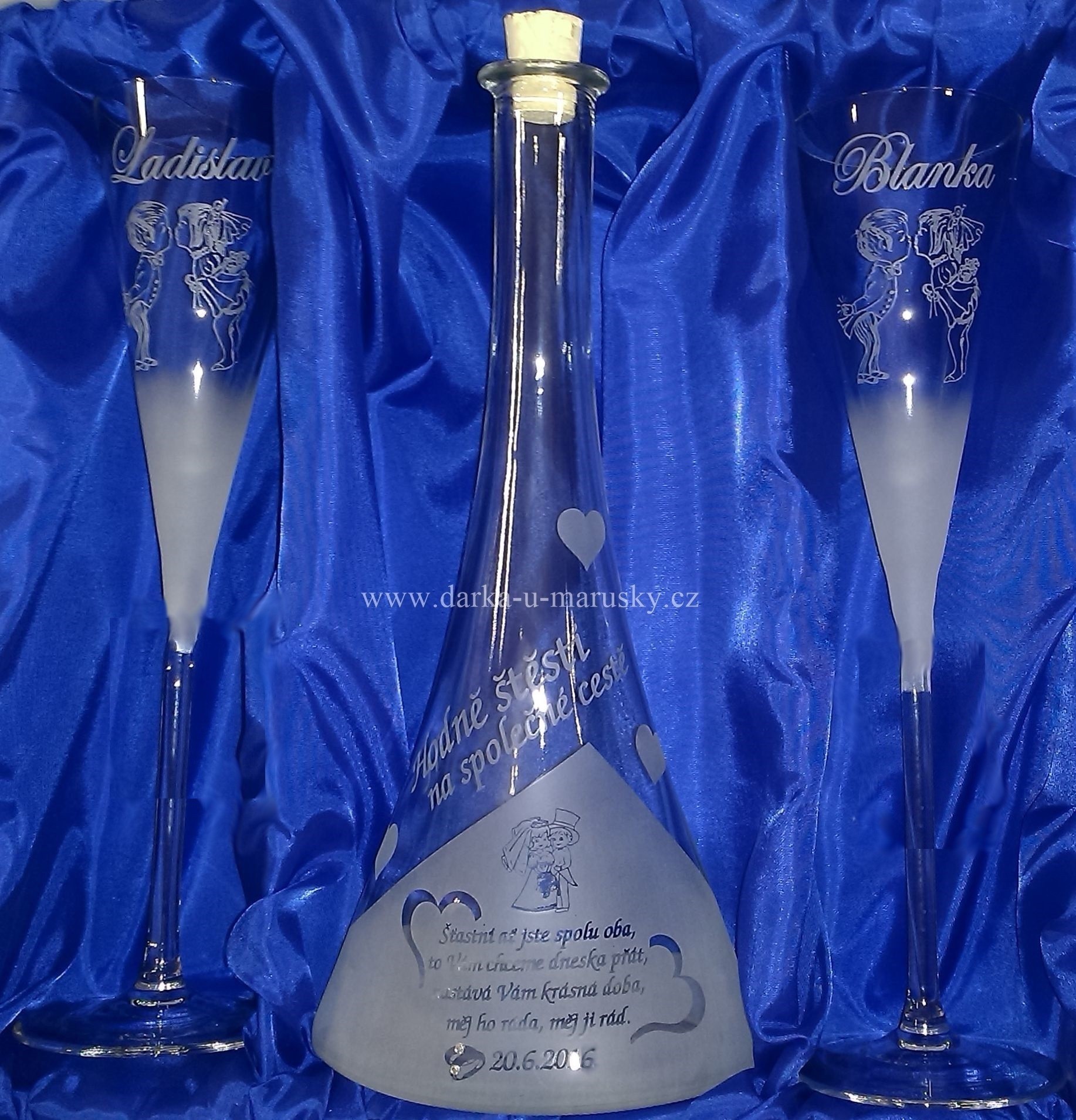 - 2 číše + 1 láhev s dárkovou krabičkou, u které máte možnost si vybrat barvu látky