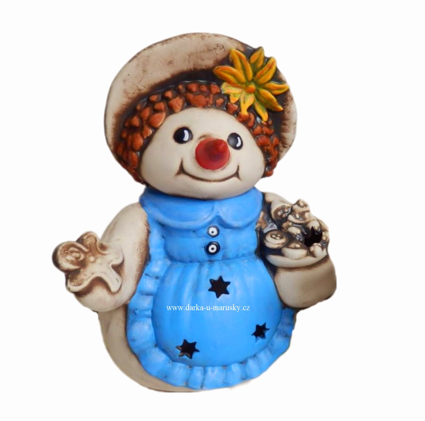 Svícník sněhulačka malá - modrá, mrazuvzdorná keramika