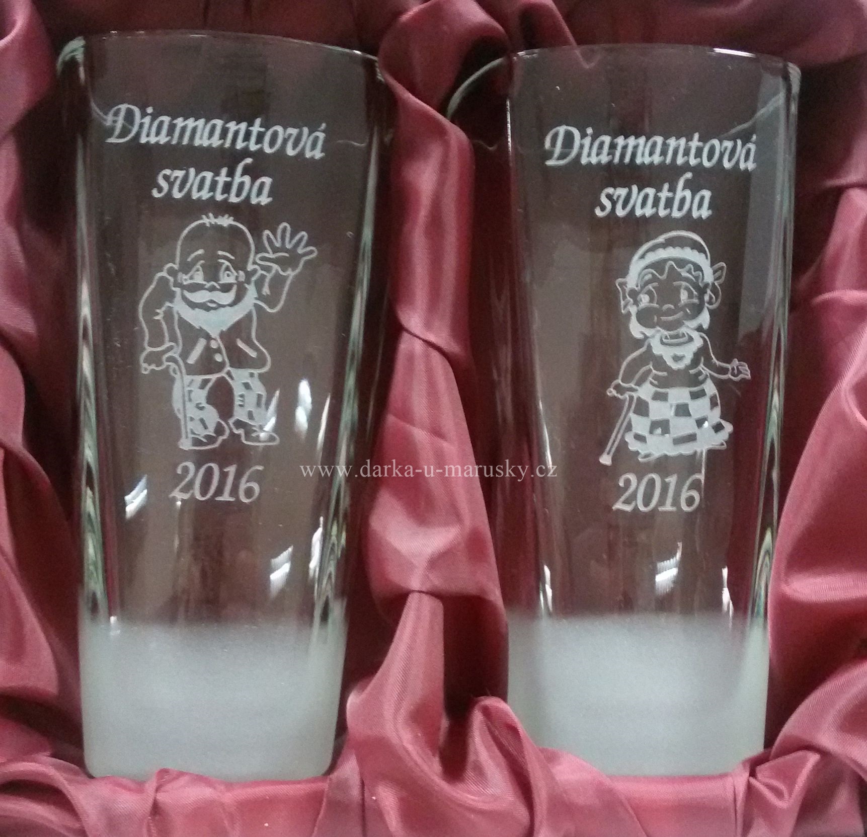 Cena je za celou sadu (2 skleničky s dárkovou krabičkou, u které máte možnost si vybrat barvu látky).