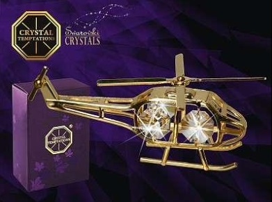 Luxusní kovová pozlacená figurka - Vrtulník - Swarovski Crystals.