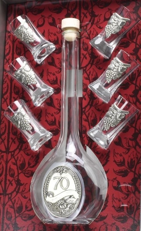 - Nápojový dárkový set 7-dílný sklo s cínovými dekoracemi k 70-tinám