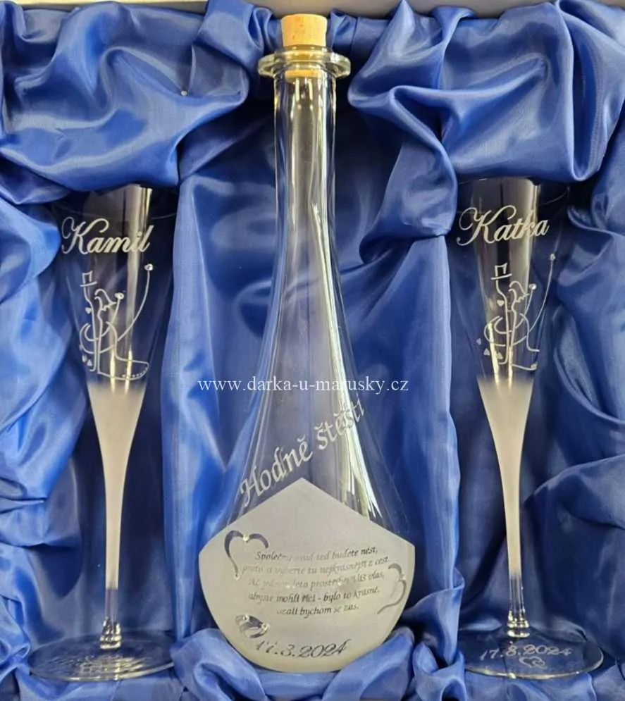 Svatební souprava IVETA 2+1 ZL - č.13 - Hodně štěstí (Zapískovaná láhev)